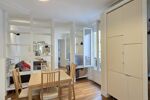 Le parquet et les moulures confèrent un réel charme à cet appartement, qui se combine à merveille avec son aménagement moderne offrant confort et praticité. Au premier étage avec ascenseur et donnant sur cour, cet appartement spacieux offre lumière et calme grâce à ses nombreuses fenêtres en double vitrage.