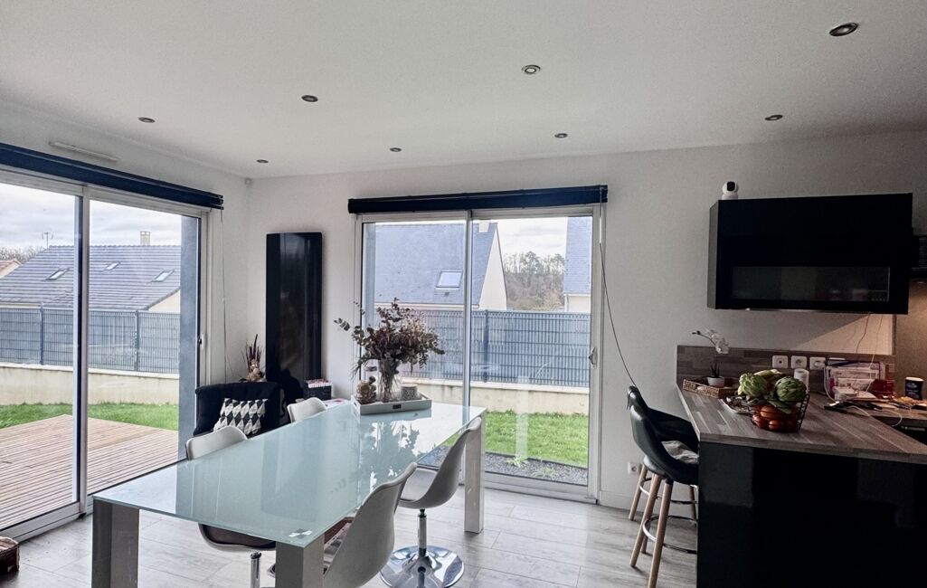 iad France - Gretel Poirier vous propose: Idéalement située à deux pas des écoles de la commune cette maison contemporaine toit plat implantée sur un terrain clos de 560M2 vous offre une vaste entrée conduisant sur pièce de vie triple exposition avec sa cuisine américaine aménagée et équipée. Au rez de chaussée une suite parentale avec sa salle d'eau privative, WC séparés complètent l'ensemble. A l'étage une mezzanine vous mène sur deux chambres, une salle d'eau et WC séparés. Une terrasse peut être finie d'aménager avec l'ajout de gardes corps en continuité de la mezzanine à l'étage. Pour compléter l'ensemble vous disposez d'une terrasse de 47M2 environ avec sa piscine hors sol, cabanon de jardin. Le plus gros atout de la maison ses faibles consommations énergétiques. Vous n'avez plus qu'à poser vos valises !!!!