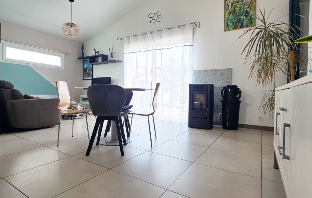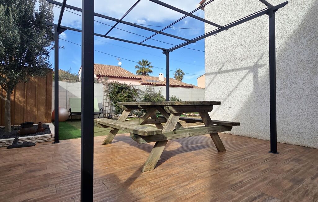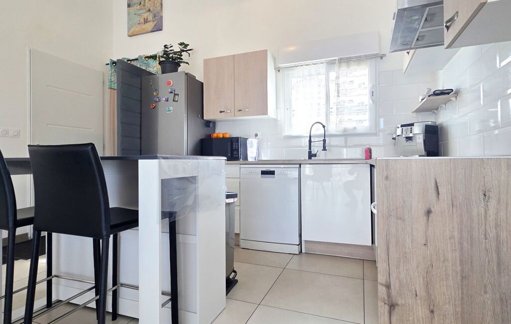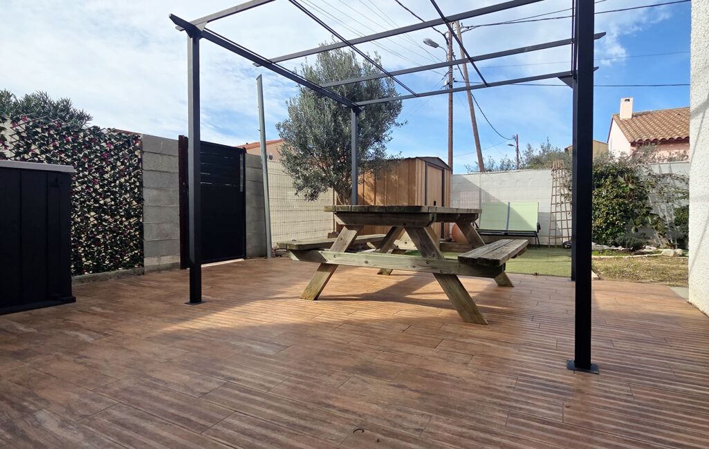 Magnifique Villa trois faces plain pied entièrement rénovée T5 de 102m2 habitable, avec garage à moto de 6m2, sur une parcelle de 250m2, exposé plein sud sans vis à vis avec deux places privatives, piscinable.