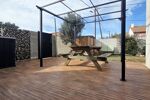 Coté jardin, une belle terrasse et gazon synthétique