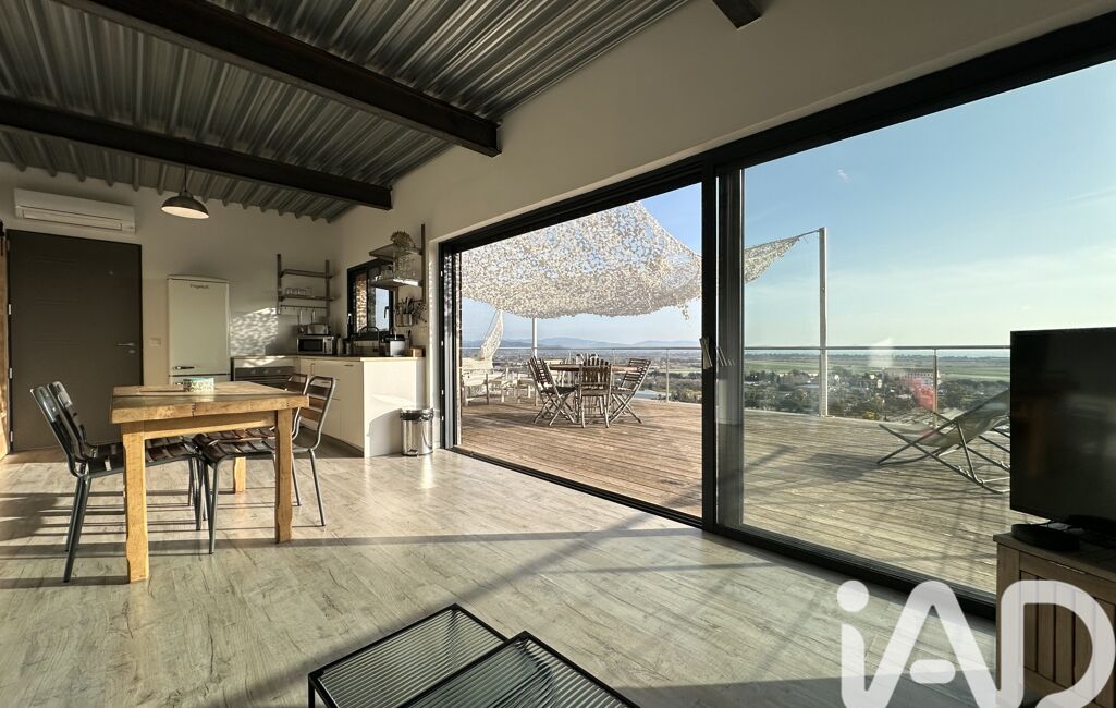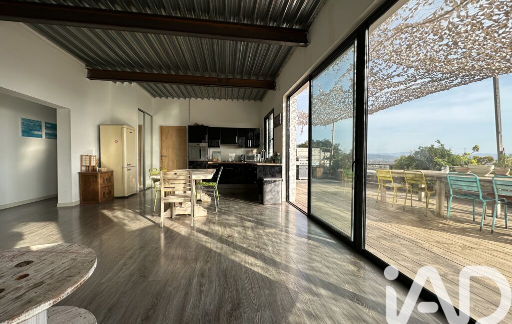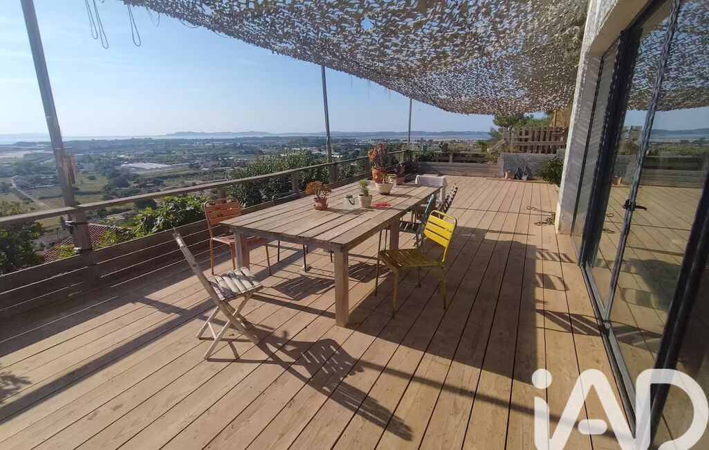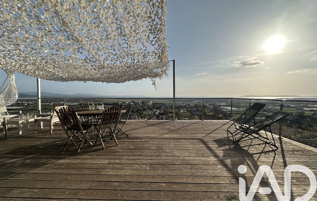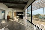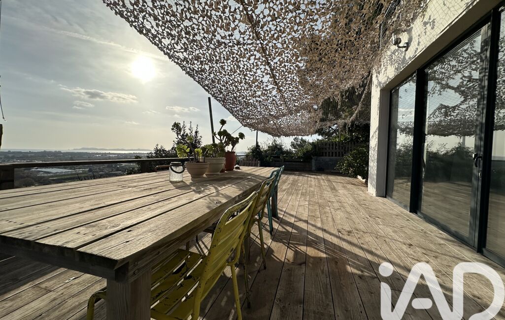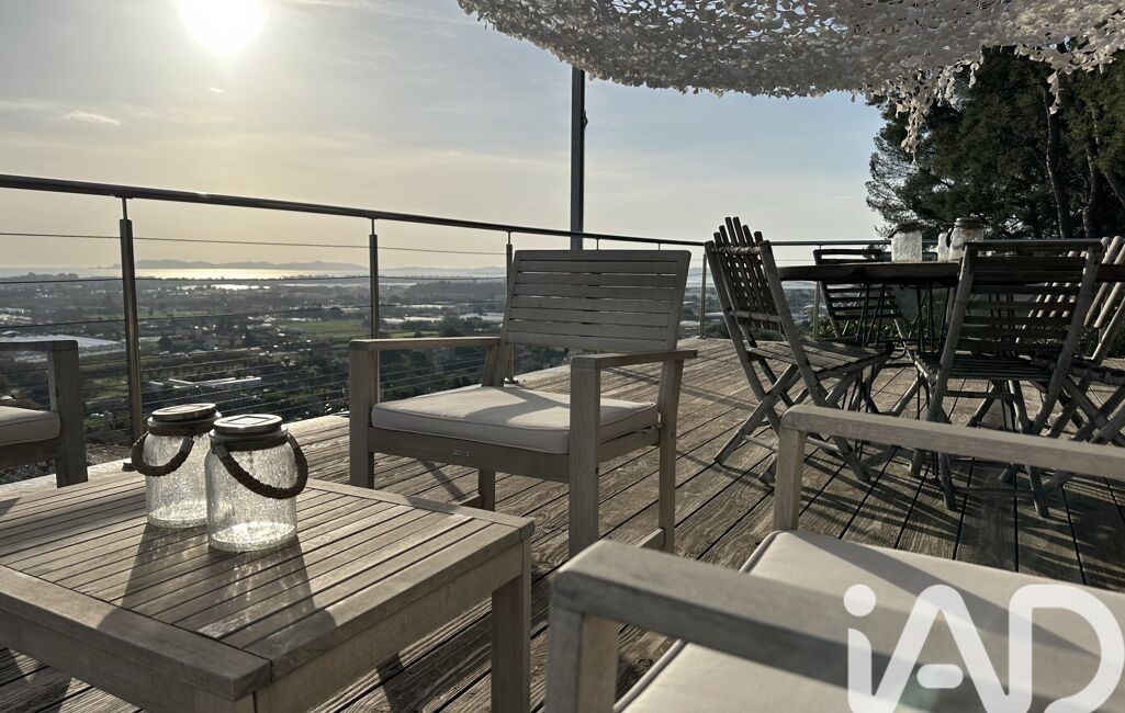 iad France - Sandrine Peres vous propose: Magnifique villa contemporaine aux prestations modernes, comprenant 2 logements indépendants (80m2 et 50m2) selon les besoins (location saisonnière, famille, travail) et offrant une vue mer panoramique à couper le souffle sur les Iles d'Hyères.