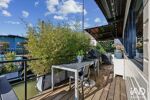 Elégant et sécurisant, vous trouverez à Boulogne : un loft sur l’eau de 135 m2 environ sur 2 étages baigné de lumière avec ses vitraux de 3m 50 de hauteur ,ses 2 terrasses fleuries réalisé par un designer reconnu pour ses créations audacieuses .