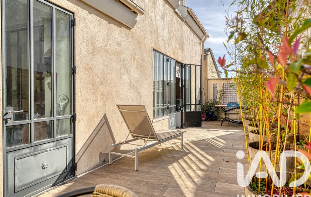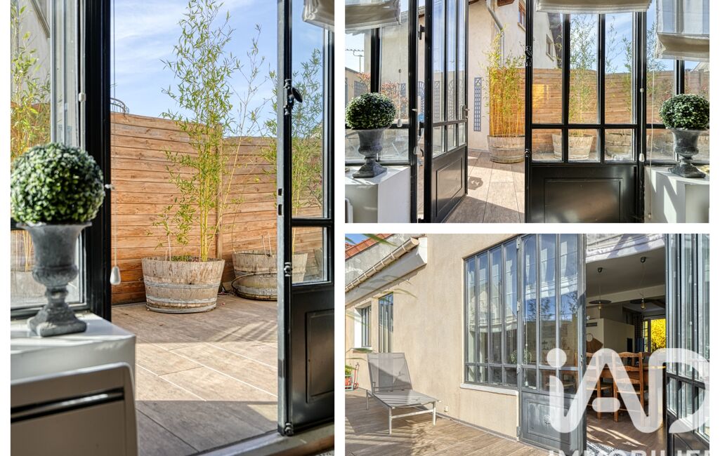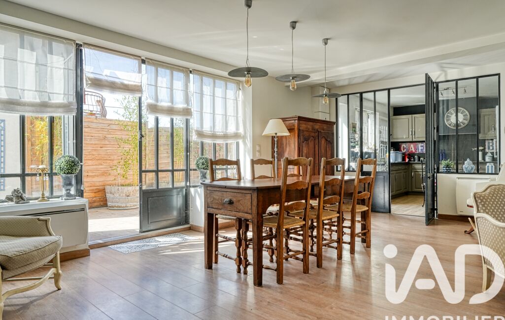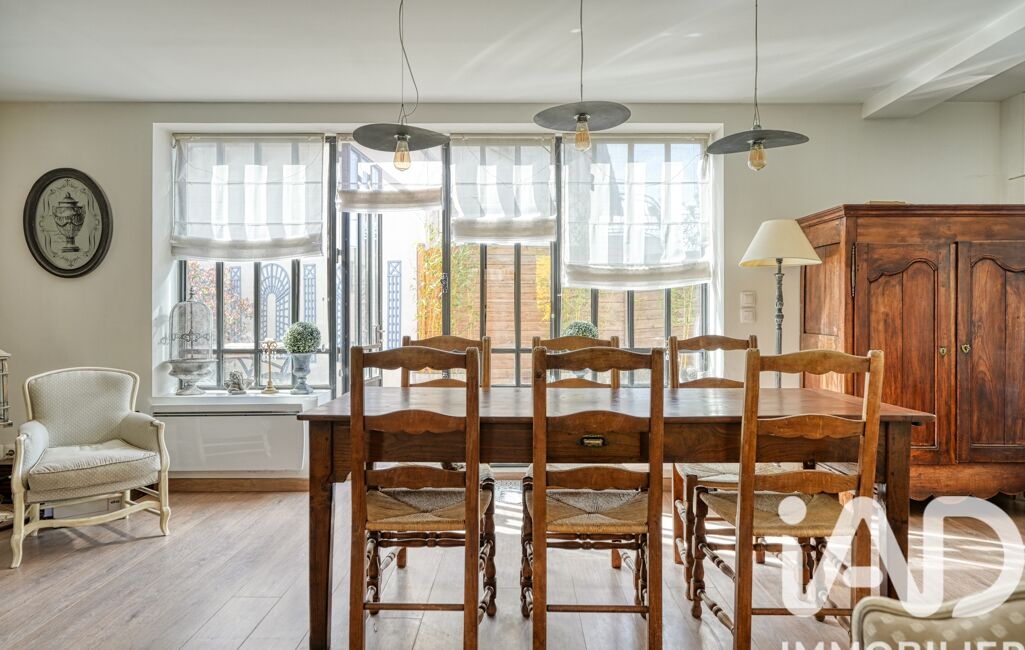 Dès les premiers pas, on ressent immédiatement une atmosphère chaleureuse et accueillante. Le séjour traversant, d’environ 40 m², baigné de lumière, séduit par ses volumes généreux et sa cheminée qui invite aux moments de convivialité. Les ouvertures esprit atelier prolongent harmonieusement la pièce vers l’extérieur et dévoilent deux belles terrasses, dont l’une s’ouvre sur un jardin paysager, véritable cocon de verdure pour profiter pleinement des beaux jours.