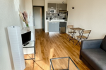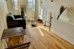 Le studio a fait l'objet d'une rénovation complète, offrant des prestations modernes et un agencement optimisé. Il est loué entièrement meublé et équipé pour un confort immédiat. L'espace de vie comprend un canapé convertible de marque Habitat, conçu pour un couchage quotidien confortable, accompagné d'une table basse élégante. Pour le rangement, une grande commode à six tiroirs et une penderie spacieuse sont à disposition, permettant d'organiser facilement vos effets personnels. Un ensemble table et deux chaises est également présent pour vos repas.