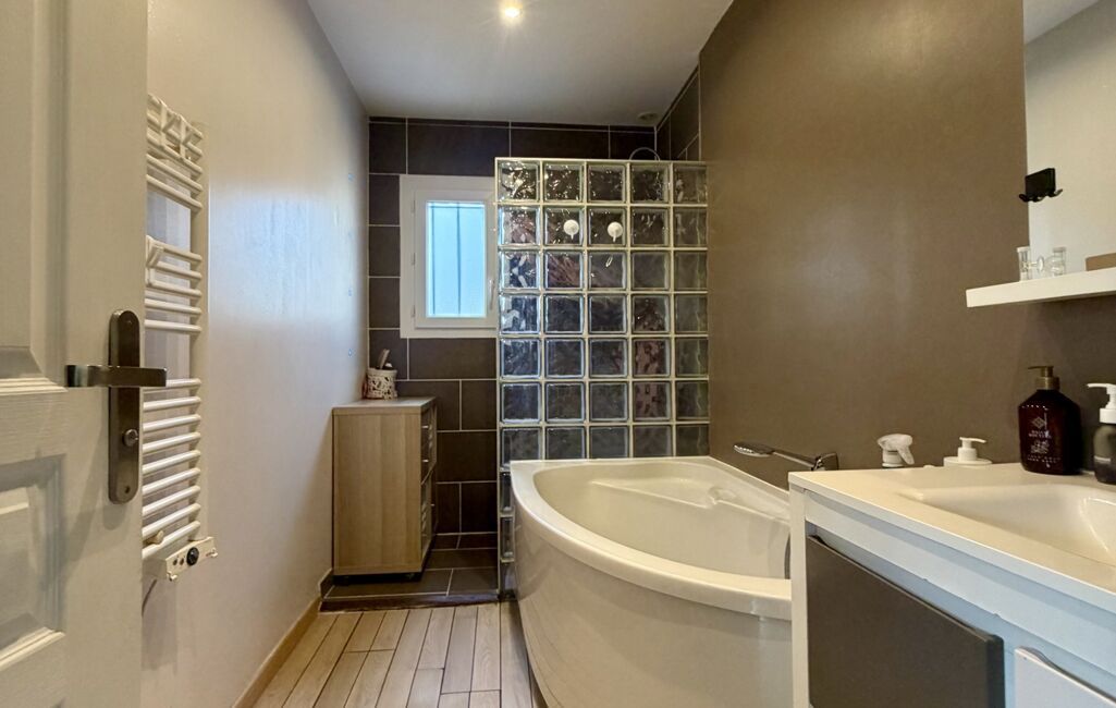 Elle offre au rez-de-chaussée une cuisine aménagée et équipée ouverte sur le séjour salon, idéale pour vos moments en famille, ainsi qu’une chambre, une salle de bains avec douche et baignoire et des WC indépendants pour un vrai confort de plain-pied.