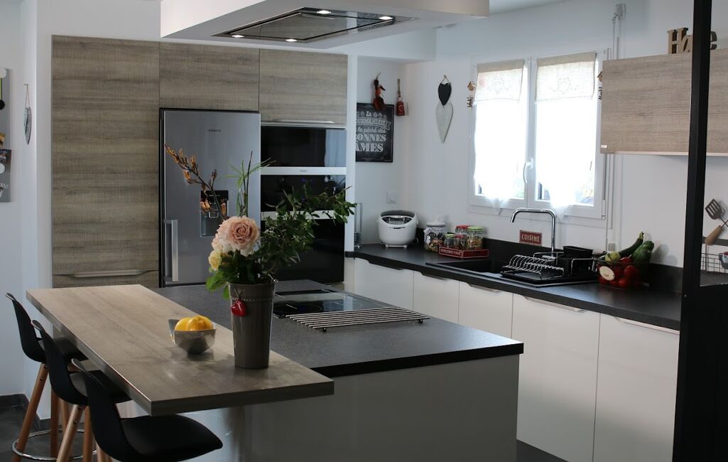 Beau salon séjour lumineux avec cuisine ouverte