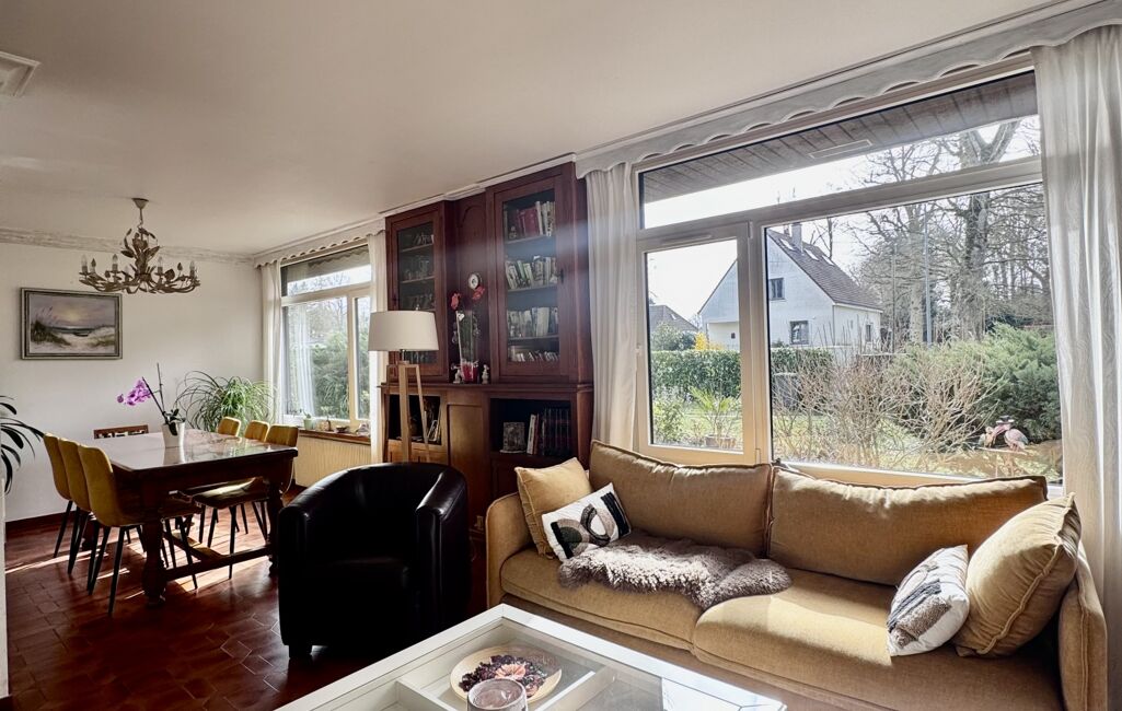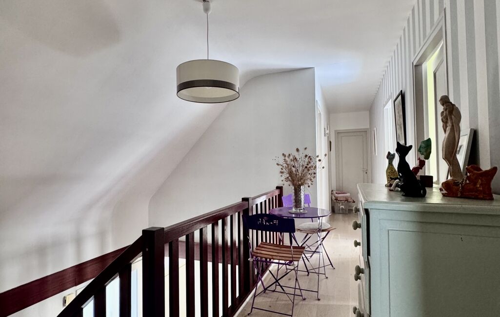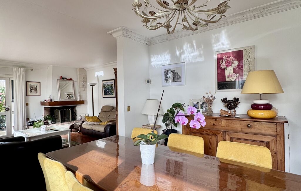 iad France - Gretel Poirier vous propose: Maison traditionnelle d'architecte de 1971 implantée dans quartier calme et prisé de la commune proche gare et commerces sur un terrain clos de 1600 M2 boisé et agrémenté vous disposez d'une maison coup de cOEur composée d'une entrée principale coté Est proposant de nombreux rangement elle vous conduit sur une pièce de vie chaleureuse avec sa véranda vue dégagée, cheminée pour réchauffer l'espace salon et un espace dinatoire. En rez de chaussée vous disposez d'une cuisine aménagée équipée récente avec espace repas, une terrasse, un garage à utilité de cellier/buanderie et un espace rangement outil. En continuité un bureau, une grande chambre, WC et une salle d'eau refaite récemment. A l'étage une mezzanine ouvre l'accès sur quatre belles chambres chaleureuses et spacieuse, une salle de bain rétro et WC séparés. Complétant l'ensemble vous disposez d'un sous sol de 40m2 environ avec espace chaudière, cave , atelier de poterie et divers rangements. De nombreux travaux ont été exécutés isolation toiture, chaudière gaz, huisseries, portail motorisé, terrasse arrière, ballon d'eau chaude...