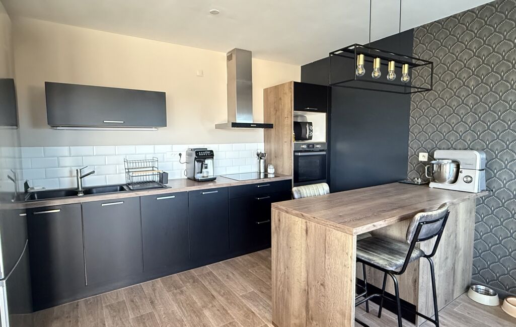 Une cuisine aménagée et équipée bien agencée.
