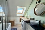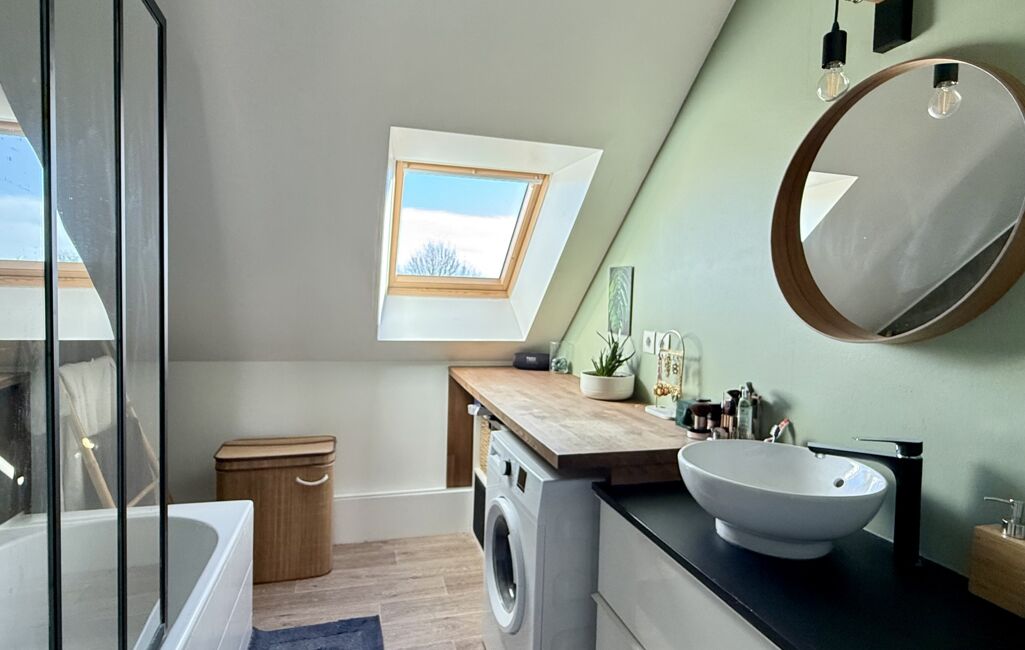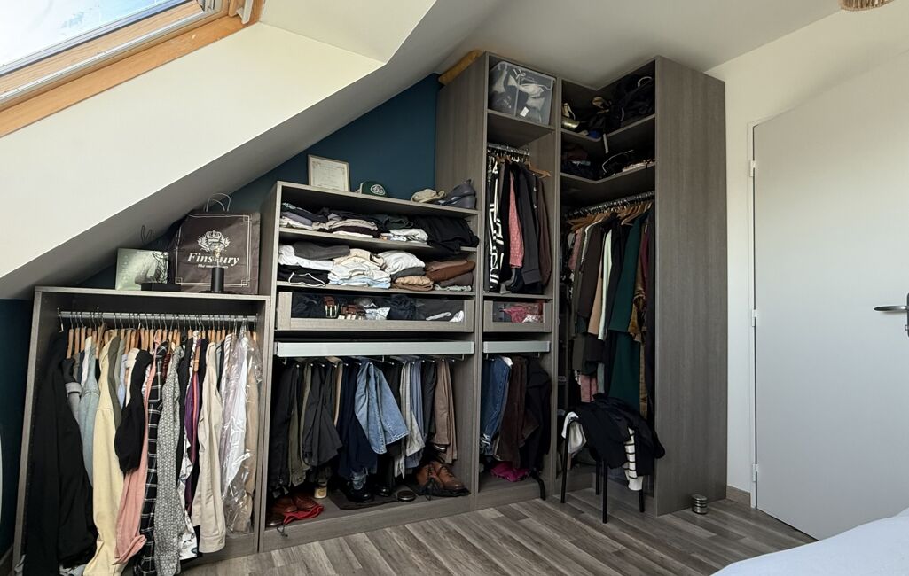 Le dégagement dessert deux grandes chambres, dont une avec dressing aménagé, une salle de bains ainsi qu’un WC indépendant.