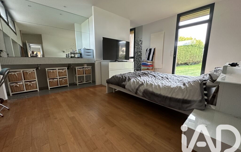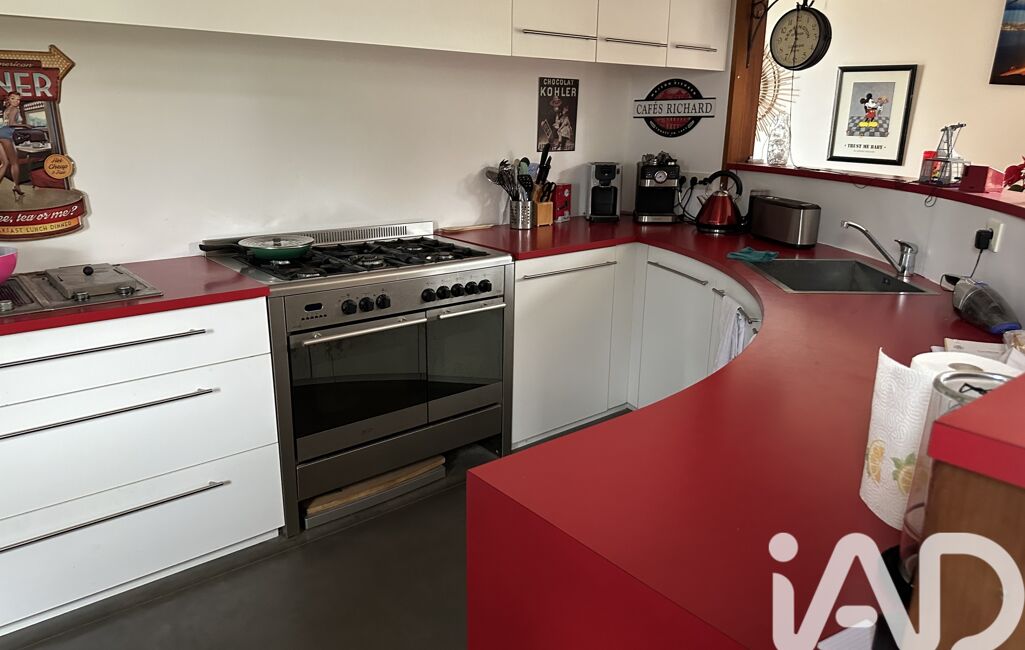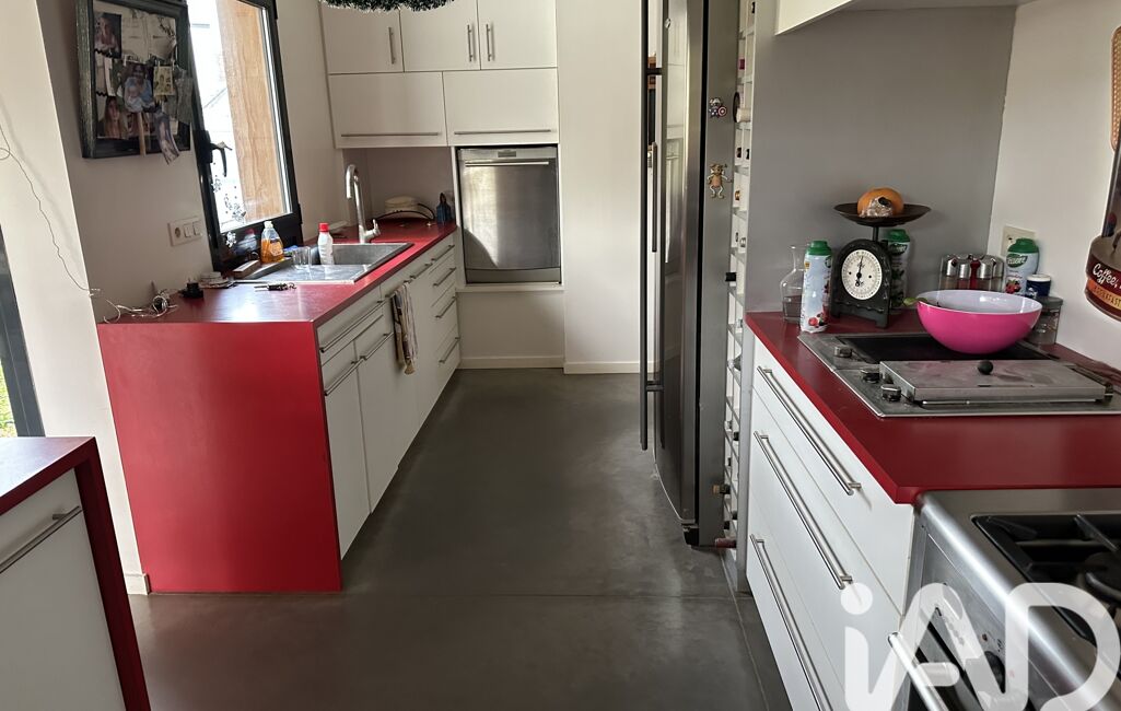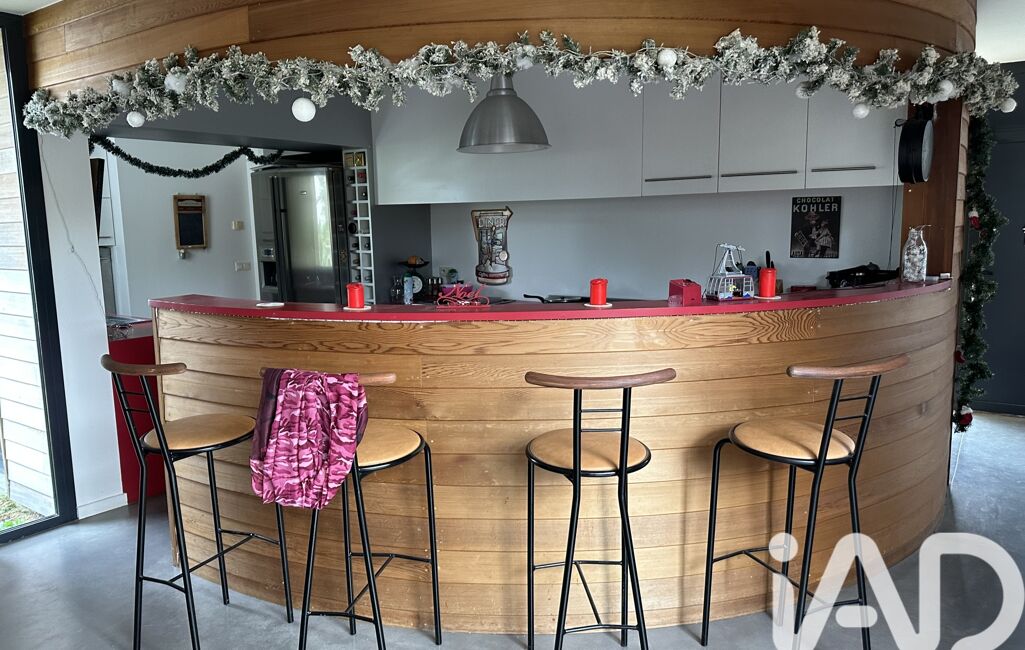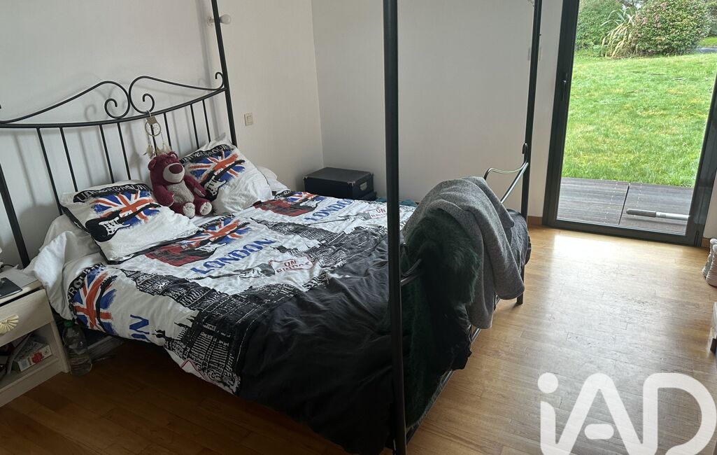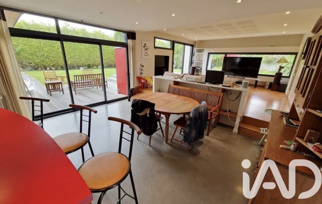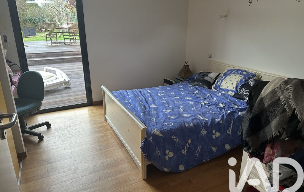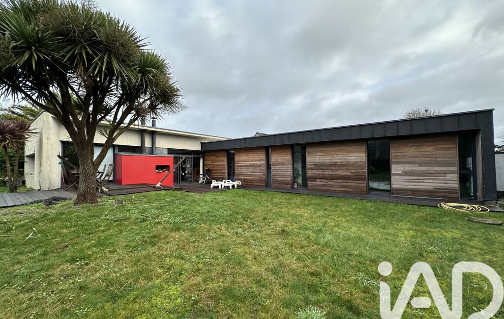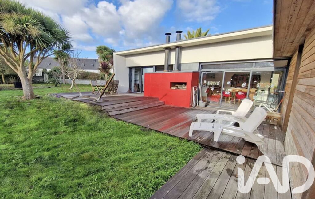 iad France - Nathalie Le Bricquer vous propose: A 3 km de la mer - Au centre de GUIMAEC - MAISON D’ARCHITECTE de 2005 de plain pied avec de beau volume et très lumineuse avec une belle terrasse plein sud composée d’une entrée avec placard, grande pièce de vie avec cuisine équipée ouverte sur séjour salon avec cheminée de 68 m², 3 belles chambres dont 1 seule parentale avec salle d’eau privative, 1 salle de bain et wc, arrière cuisine, cave de 20 m², carport, jardin clos de 1075 m². Portail motorisé. Beau jardin de 1075 m². COUP DE CŒUR ASSURÉ !