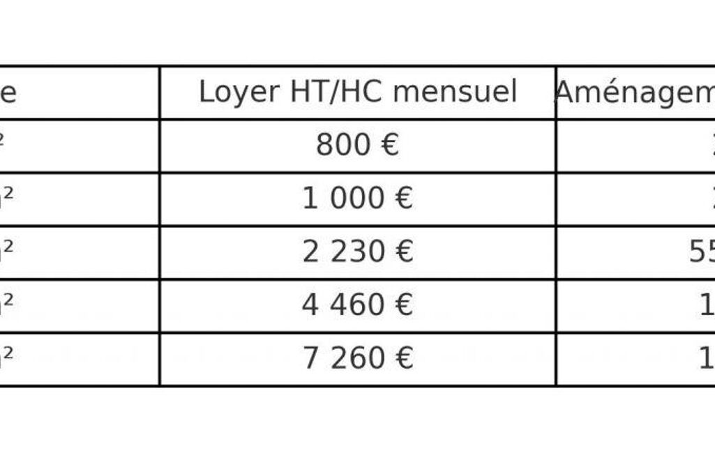 5 surfaces disponibles à la location (voir tarification précise dans les photos) :