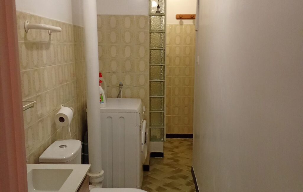 L'appartement est desservi par un hall d'entrée et se compose d'une pièce de vie avec cuisine ouverte aménagée et partiellement équipée ainsi que d'une salle d'eau en enfilade carrelée comprenant une cabine de douche et des w.c.