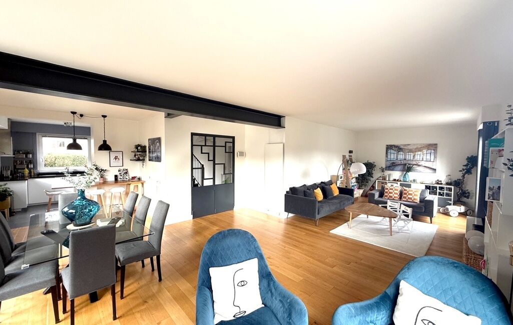 Dans le quartier recherché des Gressets, à seulement 4 minutes à pied de la gare de Bougival (ligne L - La Défense / Saint-Lazare), maison familiale totalement rénovée mitoyenne de 220 m² (185 Carrez) exposition Sud / Ouest bénéficiant d'une vue exceptionnelle et totalement dégagée, visible depuis la pièce de vie, la terrasse et le jardin.