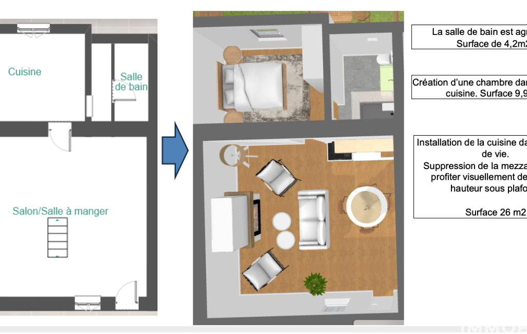 D'une surface de 39.8 m, cette maison offre actuellement une pièce de vie, une cuisine et une salle d'eau. Vous disposerez d'un jardin et d'une place de stationnement et la possibilité d'acquérir un garage.