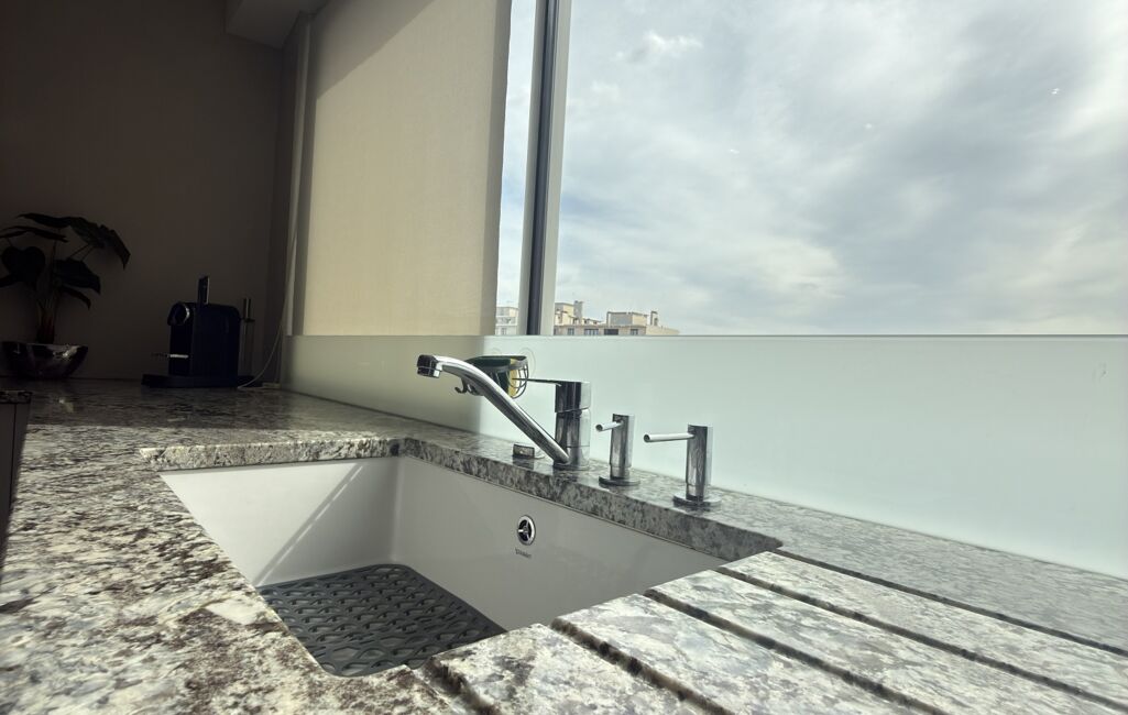 L’appartement se distingue par ses matériaux nobles et ses finitions soignées, créant une atmosphère élégante et chaleureuse.