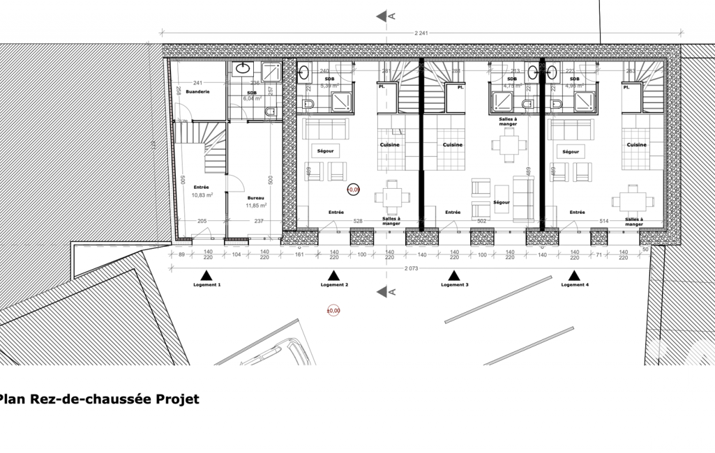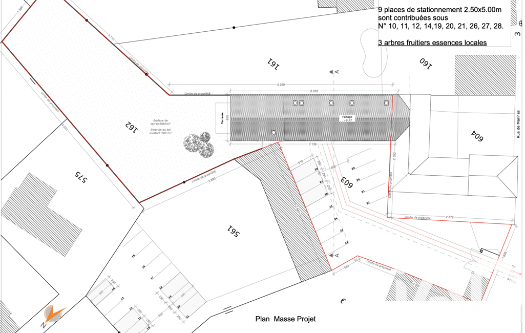 Vous trouverez dans les photos les plans de masse du projet tel qu'il a été déposé et accepté.