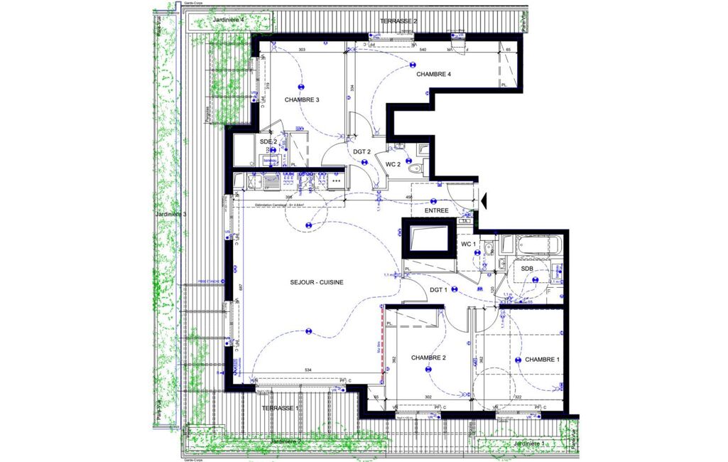 - Espaces verts paysagers, ascenseur et local vélos.