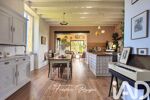 Le vaste séjour avec cuisine ouverte respire la convivialité, tandis que le salon baigné de lumière, ouvert sur l’extérieur, prolonge la maison vers un jardin intime et verdoyant.