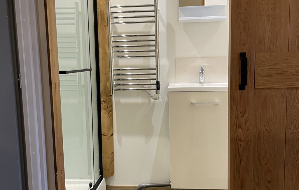 Les salles d'eau sont aménagée avec un meuble vasque, un miroir, un radiateur sèche-serviettes.