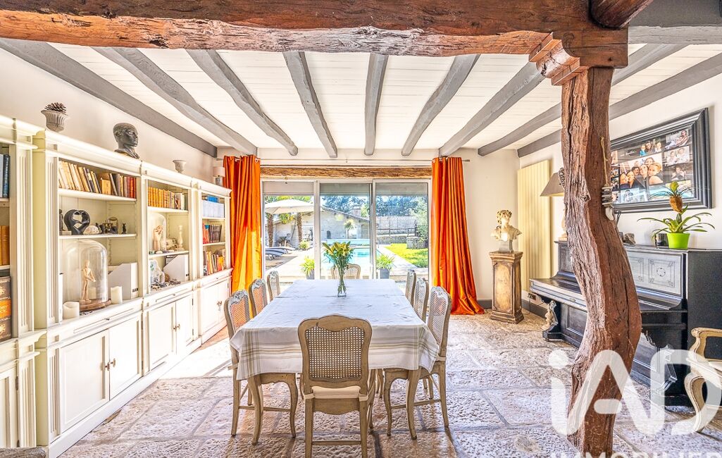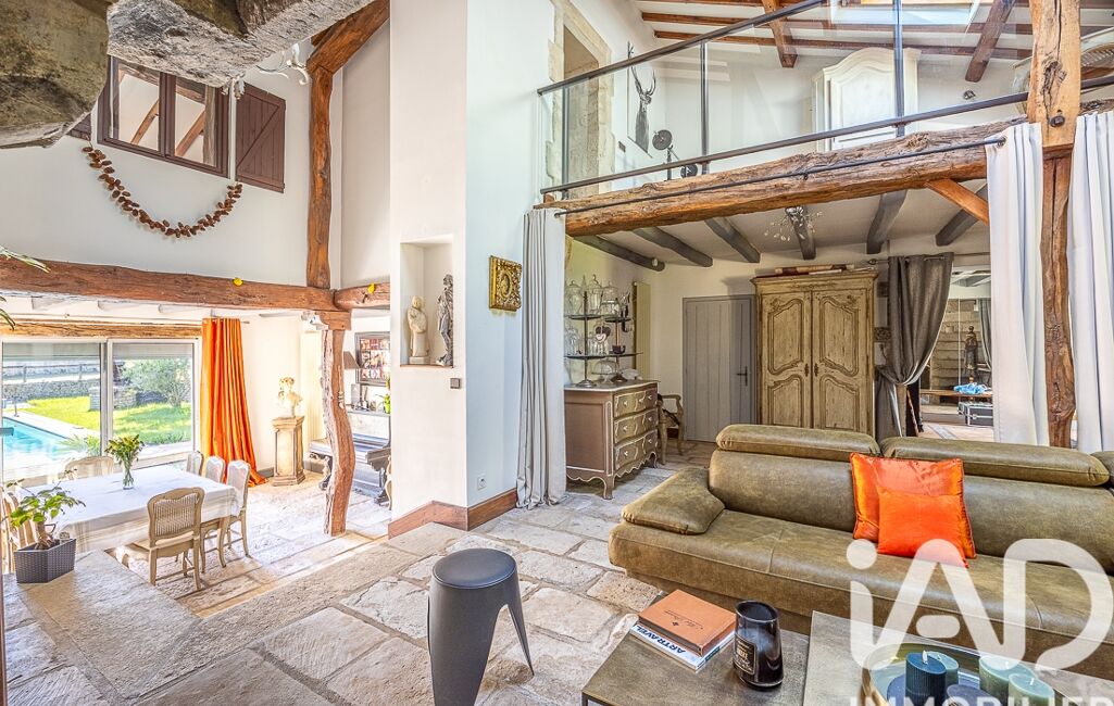 Dès l’entrée, le ton est donné : authenticité et cachet sont au rendez-vous. Vous découvrez un premier salon sublimé par un remarquable escalier en pierre. Quelques marches mènent à une salle à manger lumineuse, offrant une vue directe et un accès à la piscine. Un salon d’hiver chaleureux, agrémenté d’une cheminée, s’ouvre également sur le jardin.