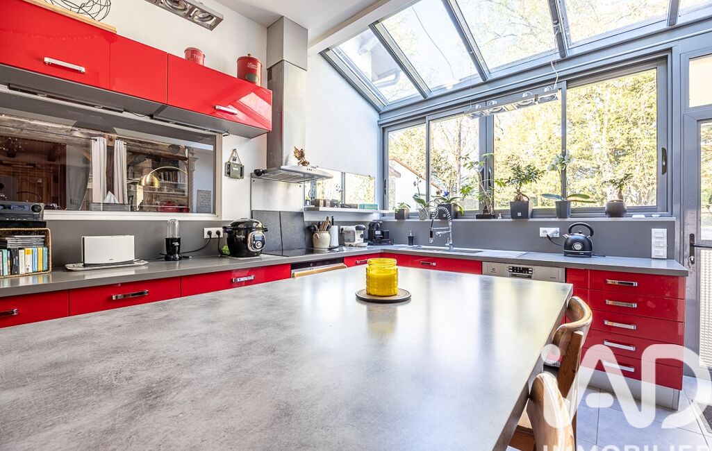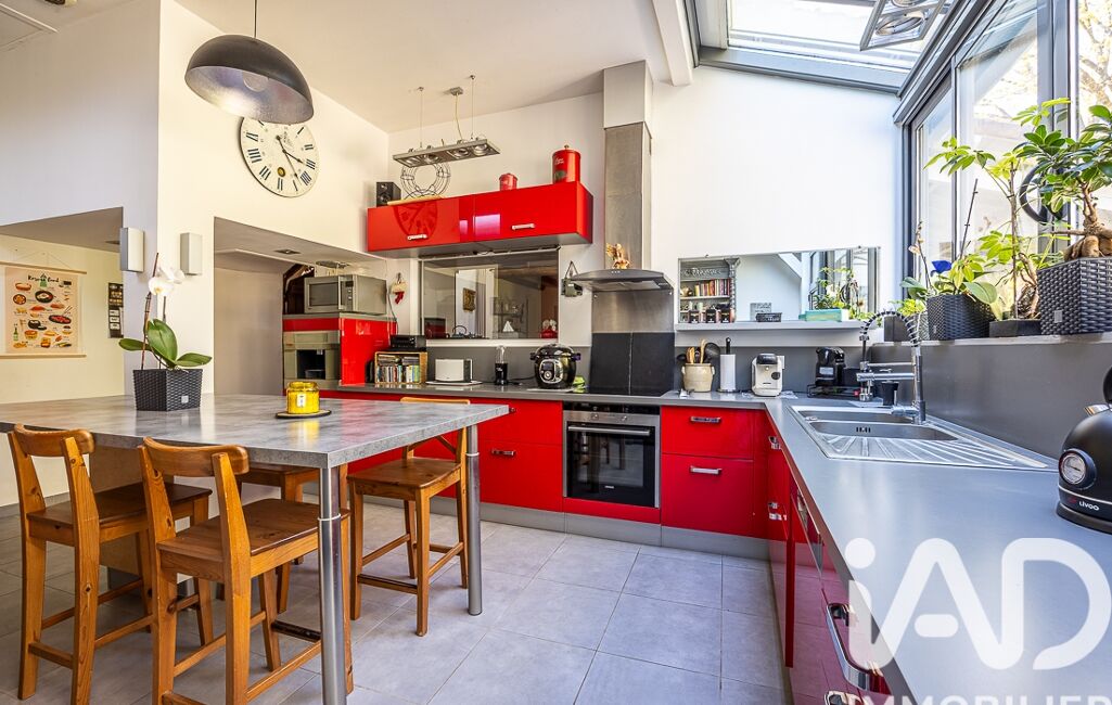 La cuisine, aménagée et équipée, bénéficie d’une belle verrière et communique harmonieusement avec les pièces de vie.