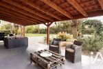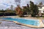 Le parc d'environ 2700 m2 dispose d'un forage et propose une grande terrasse couverte de 45 m2 accédant à la piscine de 8x5 m avec nage à contre courant.