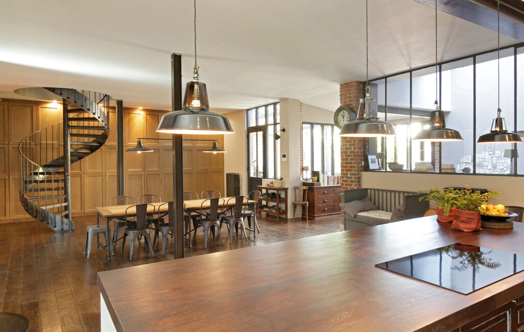 Hauteur sous plafond, une cuisine ouverte de plus de 6 mètres de long et une salle à