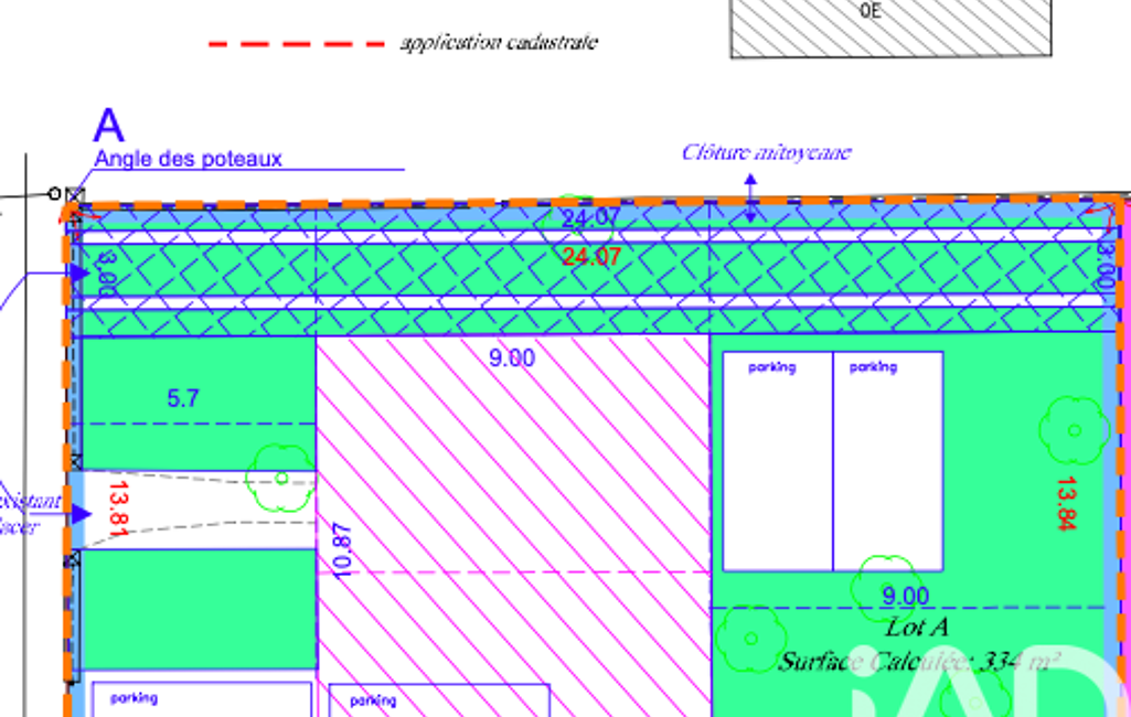 - Superficie terrain : 334 m²