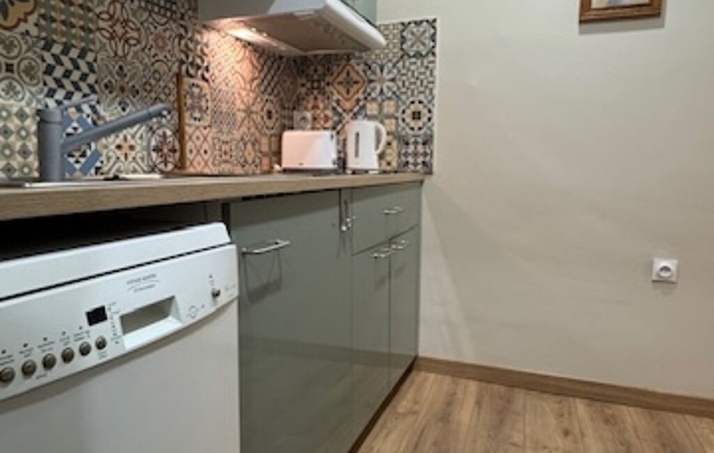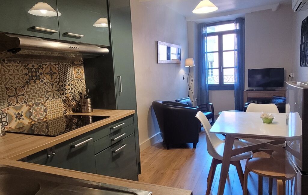 Au premier étage un studio lumineux d’environ 20 m², entièrement rénové et climatisé, 4 couchages.