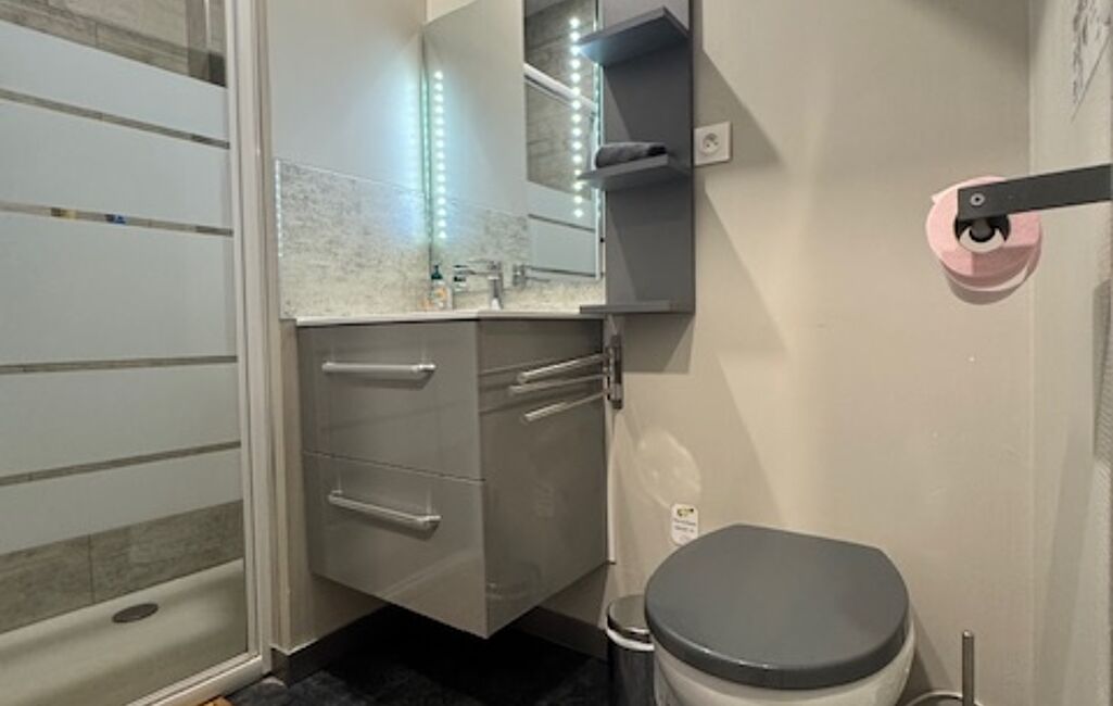 Au deuxième étage, un appartement 2 pièces + cabine d’environ 30 m², offrant 6 couchages, un séjour avec cuisine ouverte, une chambre, une cabine et une salle d’eau, le tout dans une atmosphère à la fois authentique et moderne.