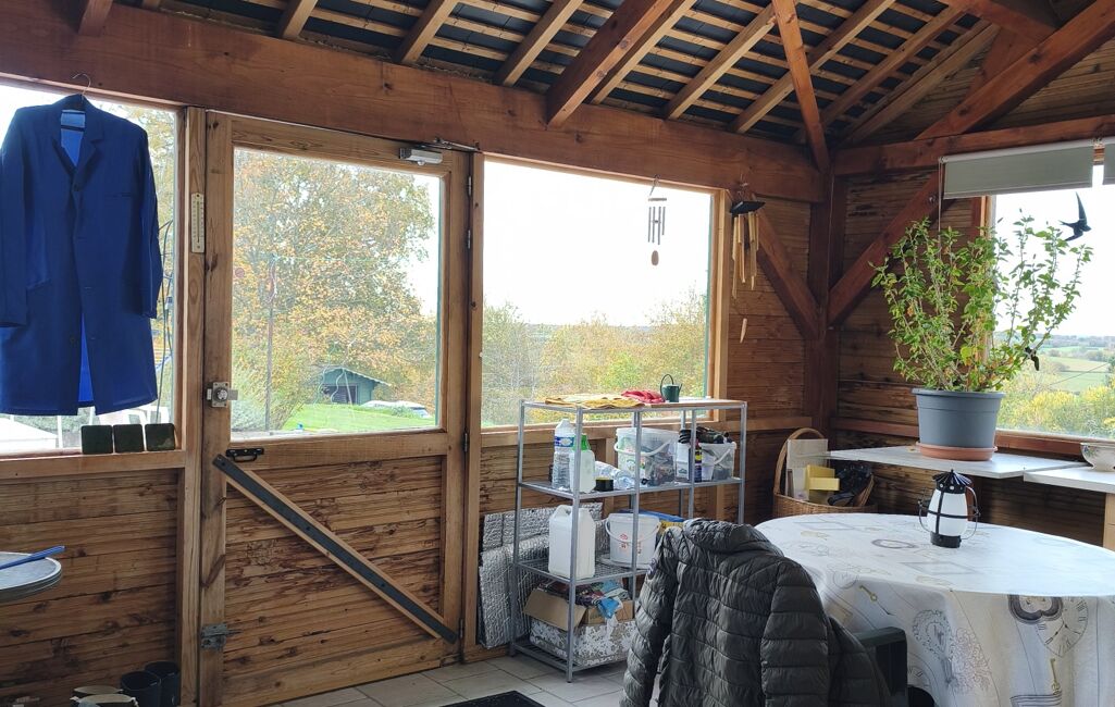 Côté extérieur, la longère est sur un vaste terrain offrant de nombreuses possibilités d'aménagement avec deux garages, un atelier et un abri de jardin.