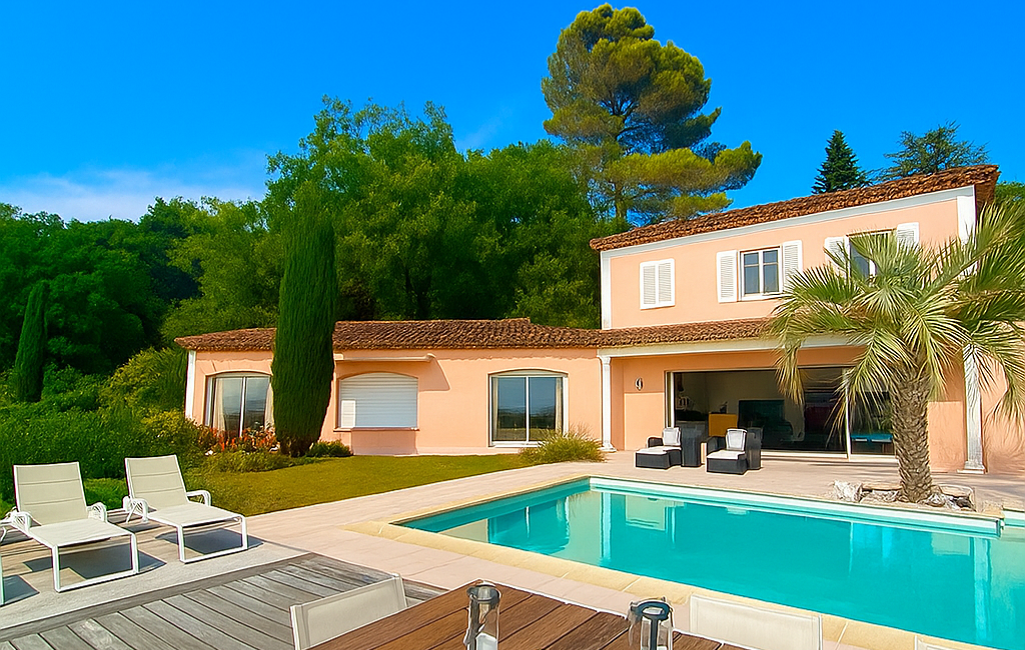 Entre Plascassier et Castellaras, cette propriété rare offre une vue imprenable sur l’Estérel et la ville de Grasse, dans un cadre calme, préservé et sans vis-à-vis.