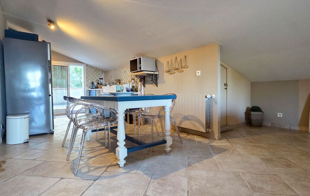 On retrouve au rez de chaussée un T2 séjour entièrement aménagé et cuisine équipée avec grande terrasse entrée indépendante.