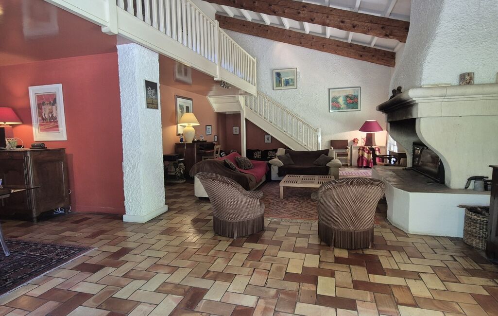 . ESPACE JOUR : une cuisine avec office/buanderie, un vaste salon cathédrale avec cheminée et une salle à manger conviviale donnant accès direct au jardin et à la piscine.