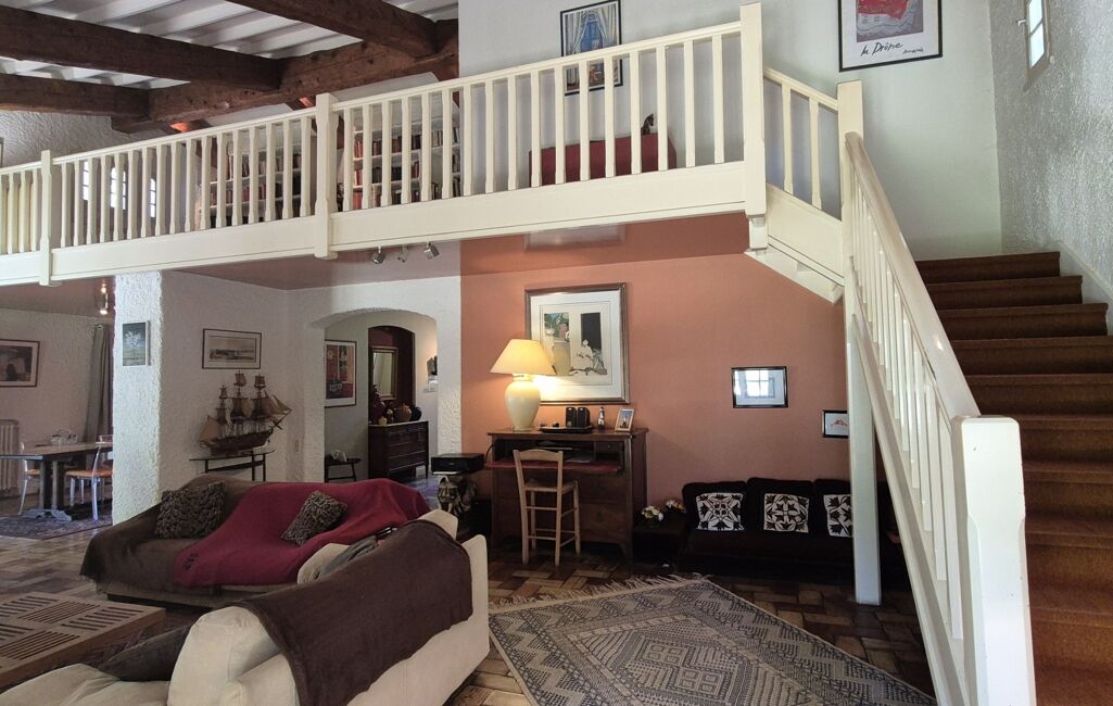 En grande partie de plain-pied, la maison offre de généreux volumes et un charme unique :
