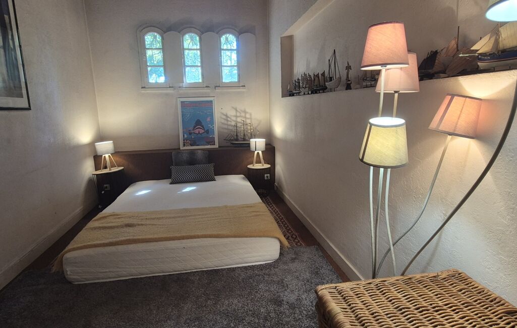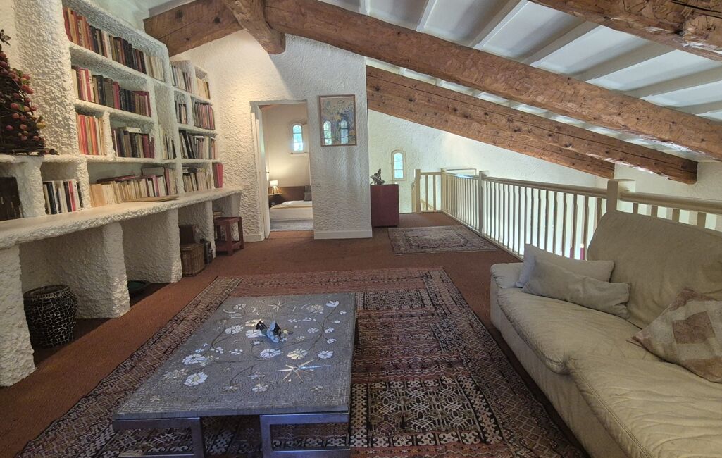 . À L'ÉTAGE : une mezzanine aménagée en coin lecture/salon ainsi qu’une chambre supplémentaire, idéale pour accueillir famille, amis ou pour un bureau.