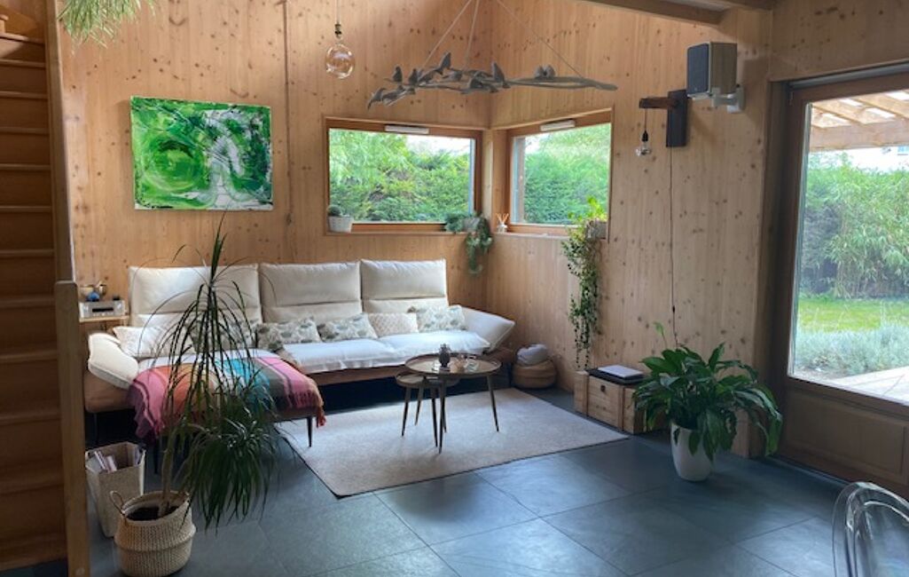 un vaste séjour baigné de lumière, offrant un cadre de vie convivial et harmonieux.
