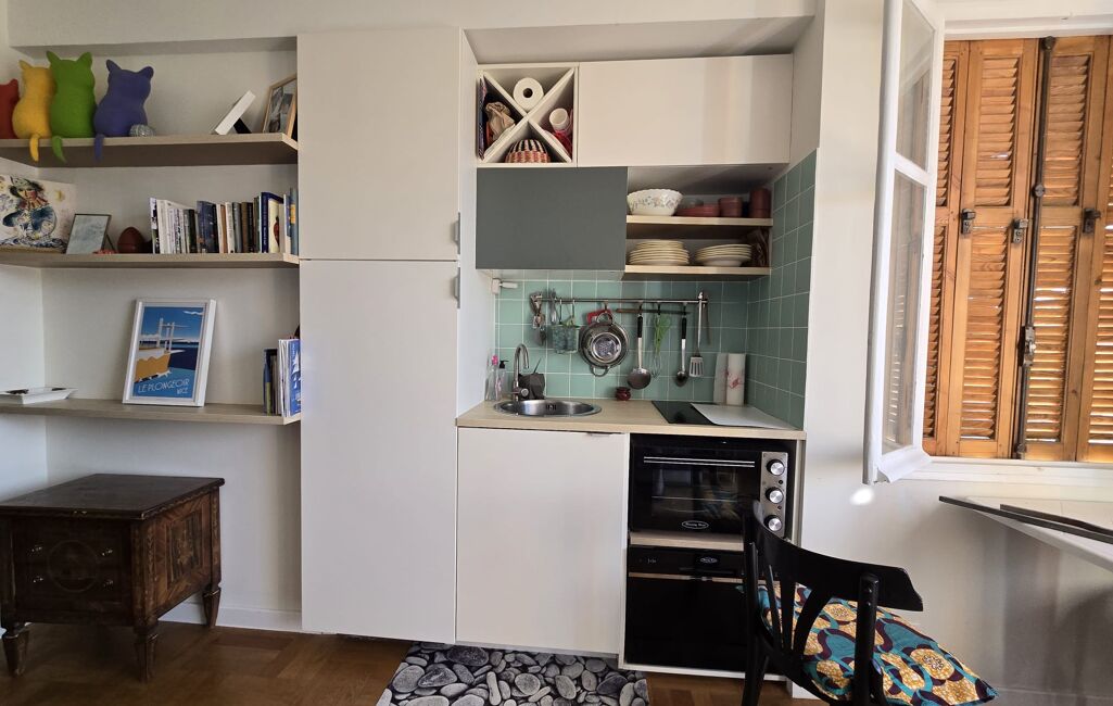 RARE dans le secteur : APPARTEMENT de 2 pièces récemment rénové avec matériaux de qualité. Composé d'une entrée avec dégagement, séjour avec coin cuisine équipée, chambre ( les deux pièces donnant sur une terrasse de 15 m²) salle des bains.Entrée dans l'immeuble par la Promenade des Anglais et la rue de France.