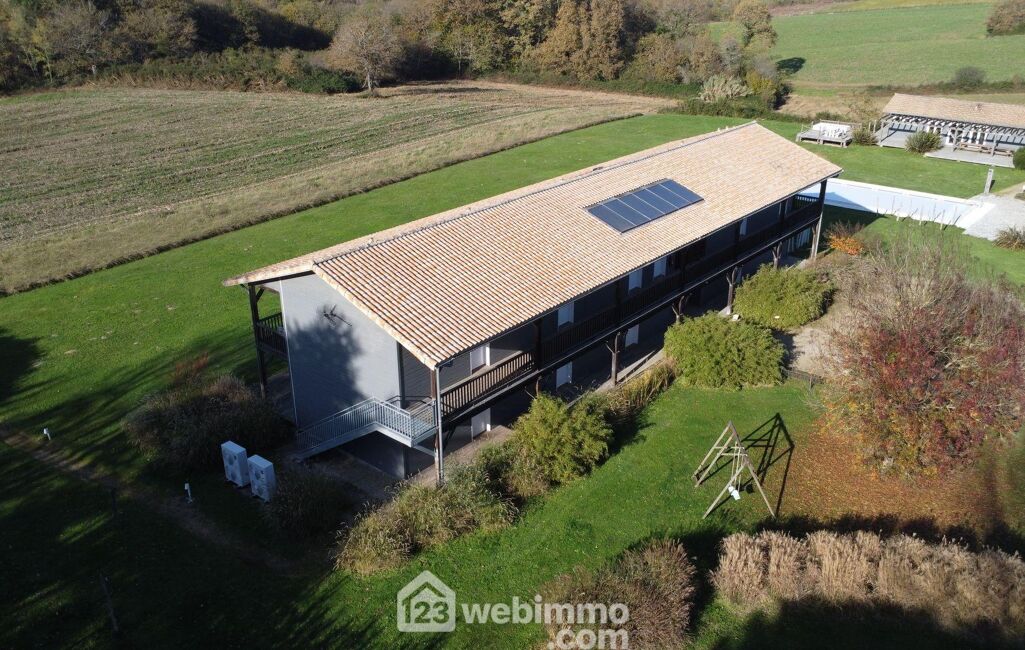 Entièrement construit en bois massif, avec une architecture raffinée pensant autant au confort qu'à l'intégration paysagère, le lieu respire la sérénité et l'élégance. Située à quelques minutes d'Hagetmau, cette propriété de 1,42 hectare marie subtilement charme naturel et prestations haut de gamme.
