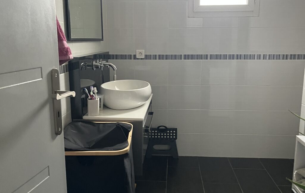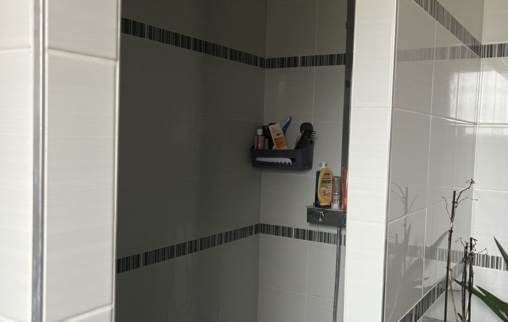 La maison dispose également d’une belle salle d’eau entièrement carrelée, d’un WC indépendant ainsi que d’un cellier, pratique pour le stockage et l’organisation du quotidien.