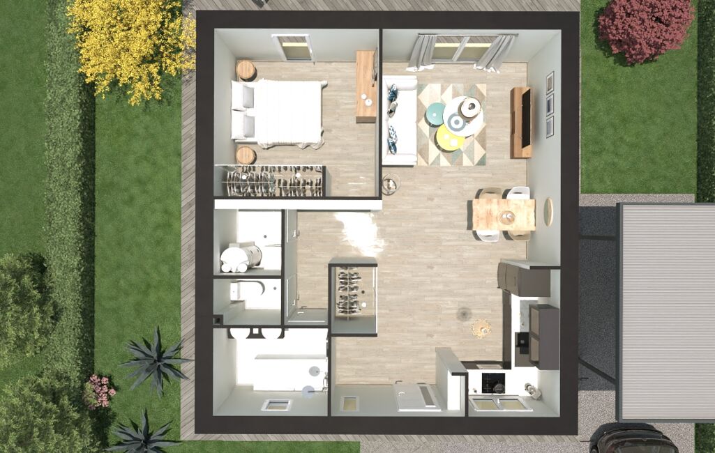 Idéal primo accédant, sur son terrain au Russey plat de 500 m2, cette maison évolutive composée d'une pièce de vie ouverte, une chambre, une salle de bain, WC et Buanderie avec ses combles aménageables, deux chambres supplémentaires seront possible pour une surface de 85 m2. Renseignements en agence au Russey.