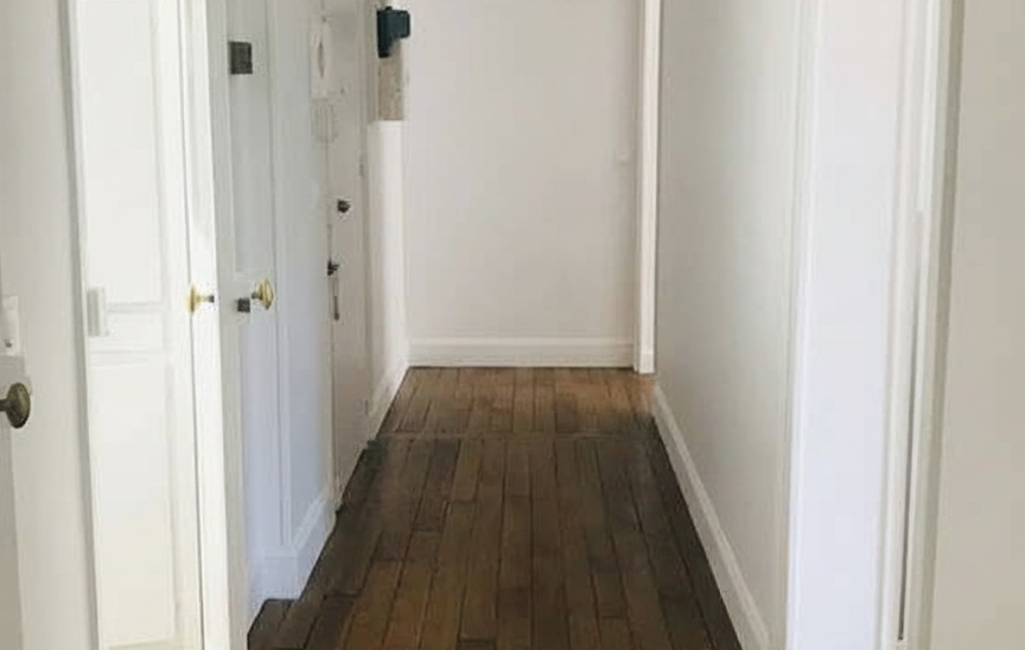 Dès l'entrée, vous serez charmé par l'authenticité des lieux : le charme de l'ancien a été soigneusement préservé avec son magnifique parquet d'origine et ses élégantes moulures au plafond. L'appartement s'articule autour d'un long couloir traversant qui dessert de manière optimale les différents espaces. La pièce de vie principale se compose d'un vaste double-séjour d'environ 25 m² donnant sur la rue. Baigné de lumière naturelle, cet espace de réception est chaleureux et convivial, aménagé avec goût (comprenant un bahut, une commode, des placards, ainsi qu'une table à manger et ses chaises).