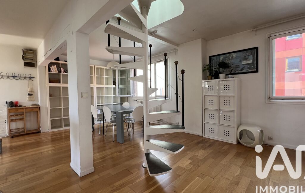 iad France - Philippe Lamand vous propose: NOUVEAUTE - A Pantin, appartement ATYPIQUE du type DUPLEX au 1er et 2è, exposition EST et OUEST, derniers étages (dans un immeuble de 3 lots) de 4 pièces de 78 m2 et 103 m2 au total en copropriété bénévole comprenant au 1er niveau, une entrée, un grand séjour avec sa cuisine ouverte, une salle de bain, un wc, une chambre, des rangements, au 2è niveau dans les combles, deux chambres avec rangements, un pallier et un wc. Accès à un JARDIN et TERRASSE partagés. Une cave complète ce bien. Facilité pour se garer sur le secteur. Me contacter pour plus d'information et prévoir une visite...
