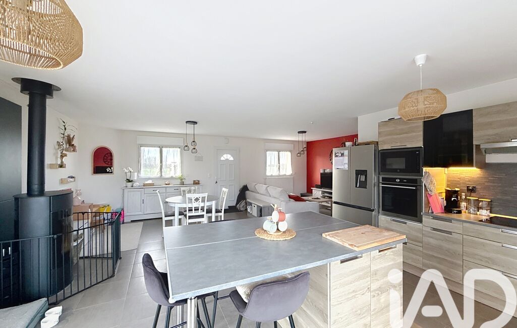 D'une superficie de 95,5m2, la maison s'organise autour d'un agréable espace de vie salon/séjour lumineux et spacieux, avec une cuisine équipée et aménagée, pensée pour les moments de partage en famille ou entre amis. Un poêle à bois vient compléter cet ensemble et crée une atmosphère chaleureuse et conviviale.