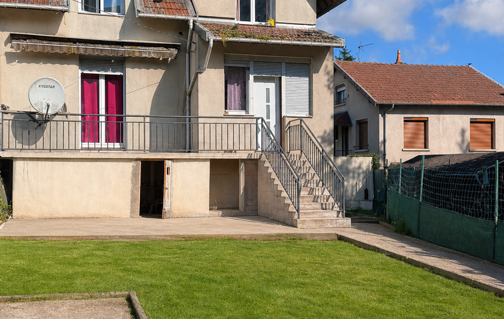 Frouard – Maison mitoyenne à rénover avec jardin clos, caves et potentiel d’extension
