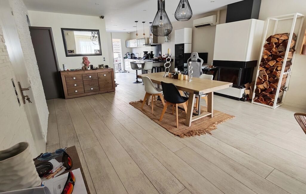 Idéalement exposée et située, de conception récente, elle se compose d une entrée , d un vaste espace salon séjour traversant agrémenté d une cheminée, d' une cuisine ouverte aménagée et équipée , de 2 belles chambres , d une grande salle d 'eau et d un garage de 24m2.