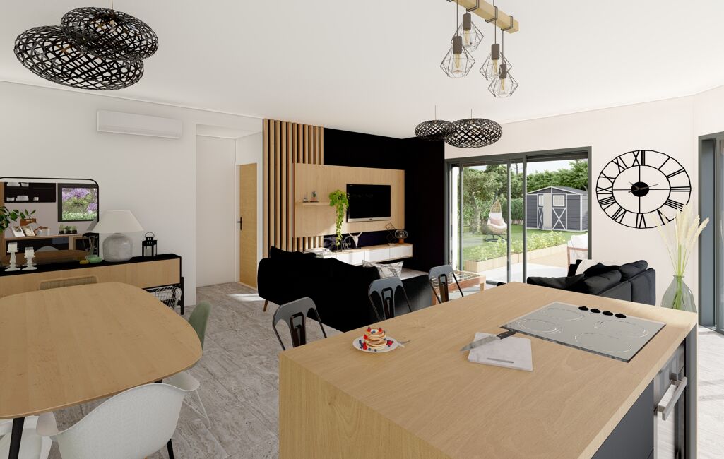 Cette future construction est composée d’une belle pièce de vie de près de 47m², baignée de lumière grâce à sa triple orientation. La cuisine semi ouverte permet un accès direct au cellier et au garage à vélo. Un véritable de gage de fonctionnalité ! Une confortable terrasse pourrait prolonger ce bel espace de vie.