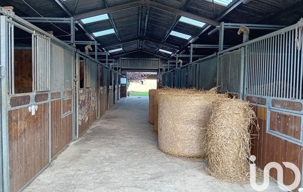 - Un grand bâtiment composé d'un manège, d'une zone de stockage pour le fourrage et un garage pour poids lourd.