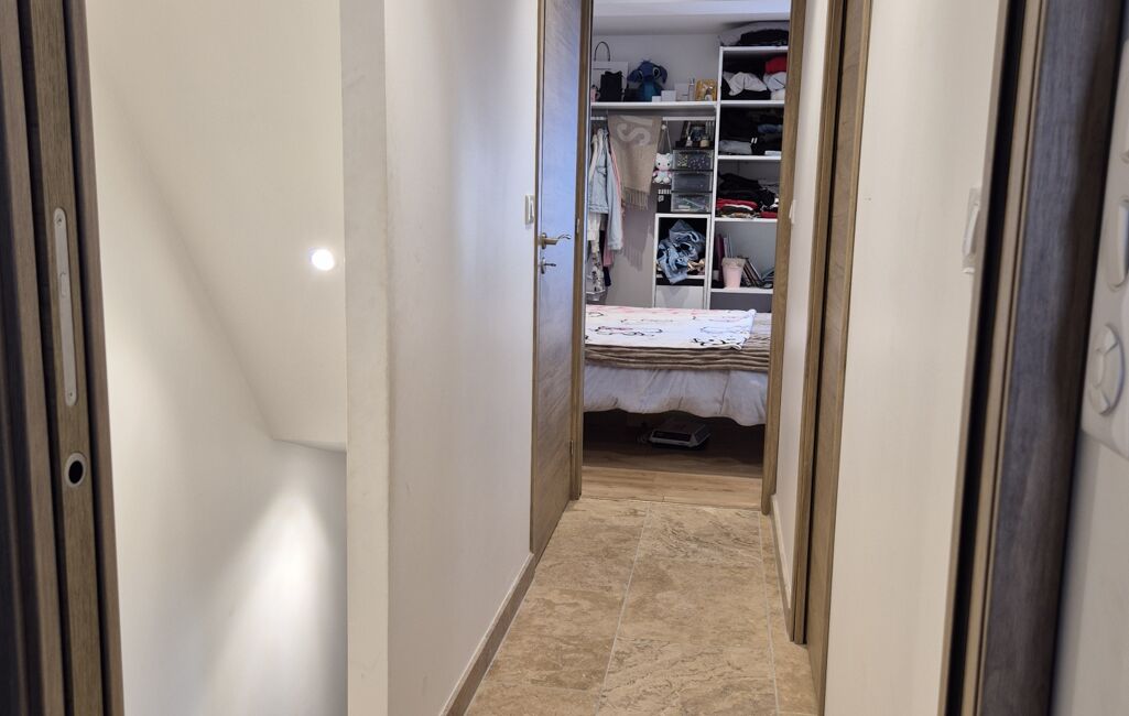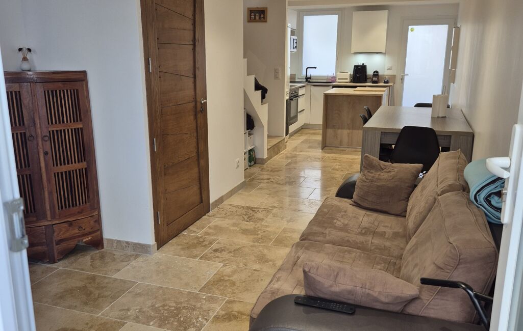 Dès l'entrée, vous serez séduit par une pièce de vie traversante, dotée d'une double exposition grâce à ses accès sur deux rues distinctes. La cuisine moderne, ouverte sur le séjour, accueille un détail architectural unique : une élégante trappe vitrée laissant entrevoir une cave en pierre, idéale pour les amateurs de vin ou pour un espace de rangement atypique.