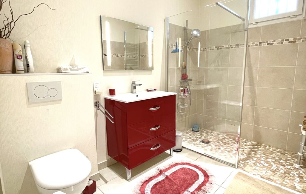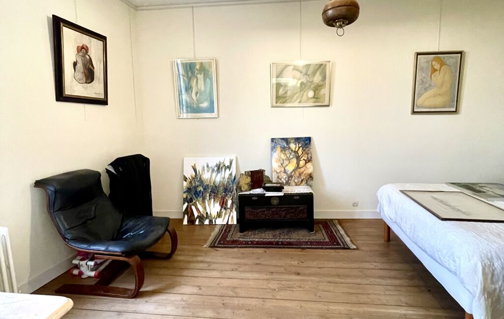 À l'étage, deux belles chambres, dont une suite parentale avec dressing, une salle de bain et une salle d'eau, ainsi qu'un grand espace bureau supplémentaire,( qui peut aussi être une chambre de 19 m²..) offrent des espaces de vie bien agencés et fonctionnels.